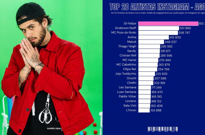 Zé Felipe segue mostrando sua força nas redes sociais. De acordo com um levantamento realizado pela plataforma Zeeng, o cantor...