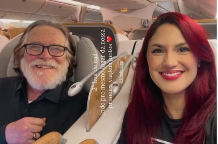 O ator José de Abreu, de 79 anos, e sua esposa, a influenciadora e maquiadora Carol Junger, de 27, estão...