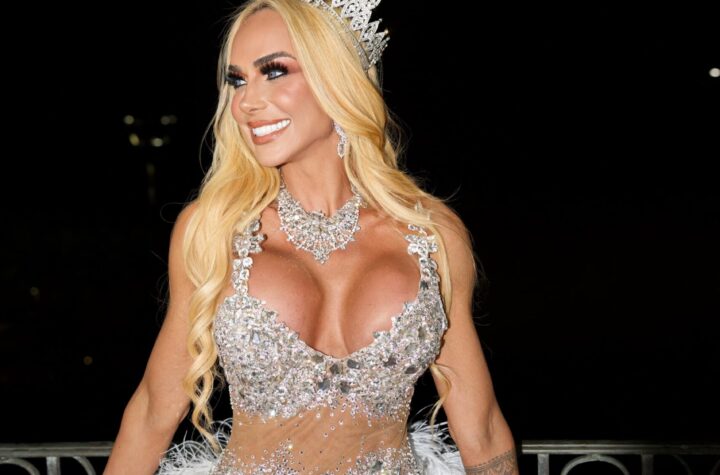 Renata Spallicci, rainha de bateria da Águia de Ouro, marcou presença no Baile da Vogue 2026 com um look que...