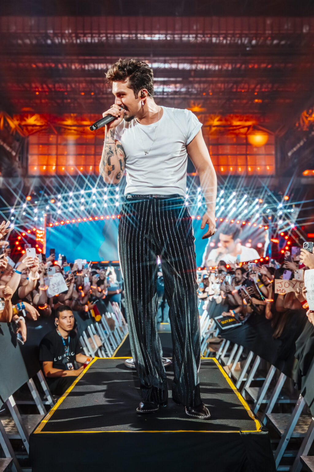 No palco, Luan conduz um show de grande porte, com cenário imersivo, passarela em “S” e painéis de LED, além de um repertório que percorre sucessos que marcaram gerações, como “Meteoro da Paixão”, “Você Não Sabe o Que É Amor”, “Escreve Aí” e “Te Vivo”.