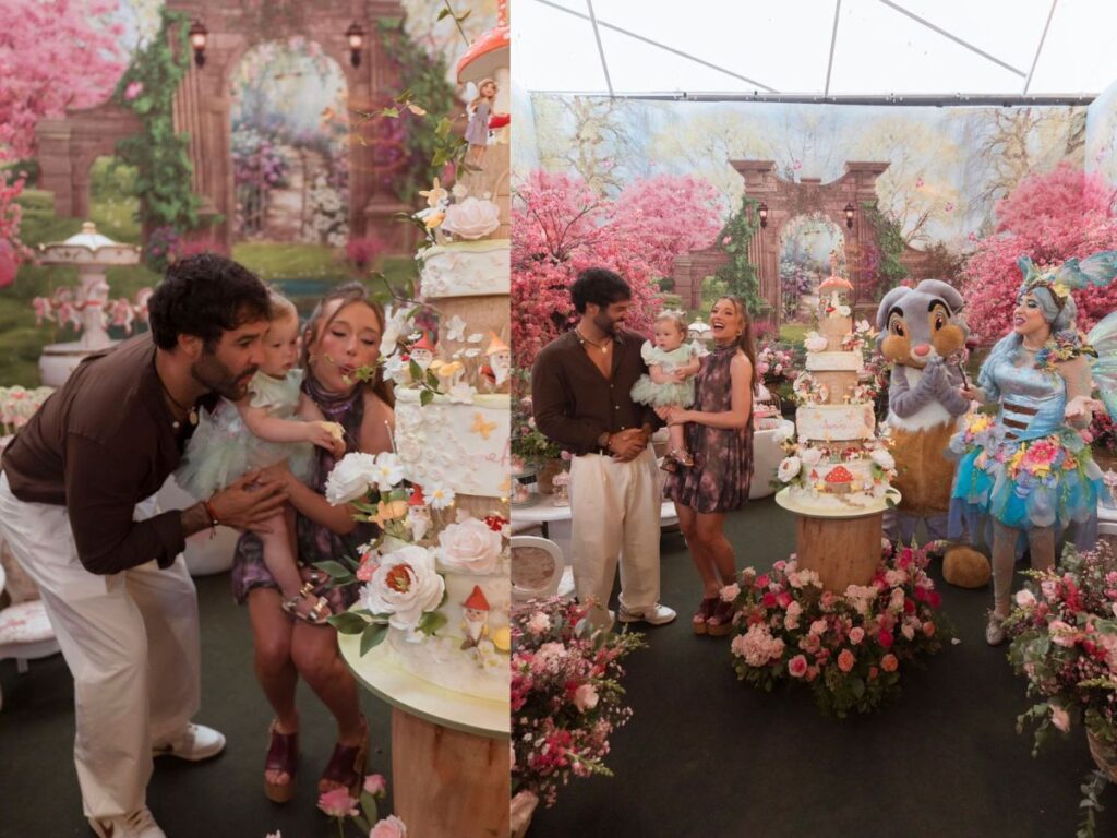 Inspirada no tema Jardim Encantado, a festa contou com produção assinada pelo cerimonialista Junior Donatto. A decoração, criada por Andrea Guimarães, transformou o espaço em um verdadeiro universo lúdico, com flores espalhadas pelo ambiente, cogumelos cenográficos e uma paleta de cores suaves que reforçou o clima poético da celebração.