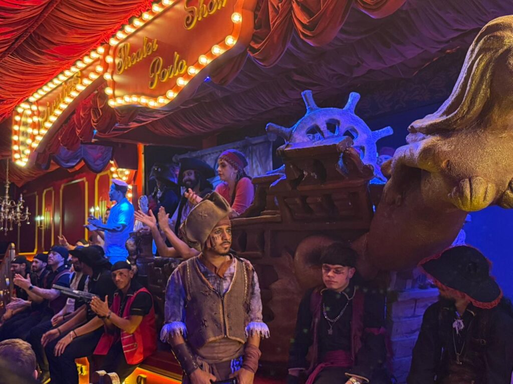 Localizados um ao lado do outro, O Navio e O Porto Cara de Mau são dois ambientes interligados que oferecem mais que um simples rodízio de pizzas. Cada espaço temático mergulha o visitante em um universo diferente. Enquanto o Navio simula o interior de uma embarcação pirata — com direito a baús de tesouro, piratas malucos e muito humor — o Porto transporta os visitantes para as profundezas do oceano, onde criaturas marinhas, sereias e marujos fazem parte do espetáculo.
