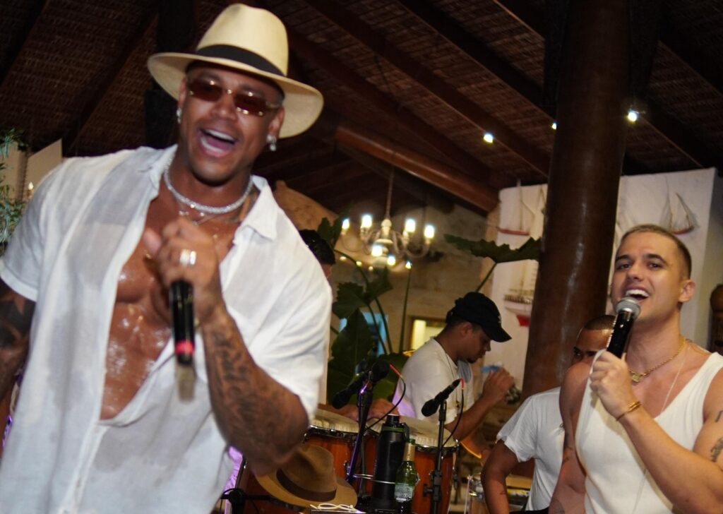 O momento mais empolgante aconteceu quando o próprio Léo Santana decidiu se juntar à apresentação. Em clima totalmente informal, o anfitrião pegou o microfone e dividiu os vocais com Guga, levando os convidados ao delírio e reforçando a energia contagiante que marcou o encontro.