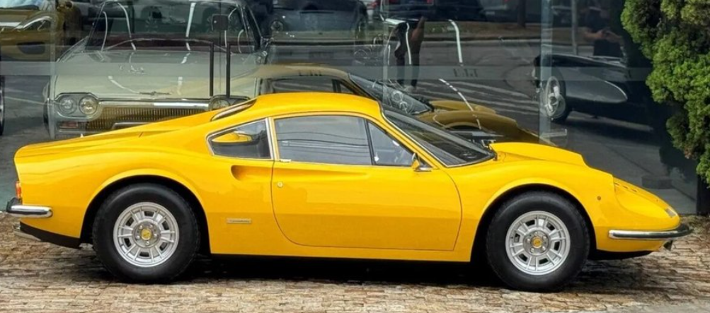 A Ferrari que lidera o leilão carrega uma história singular dentro da montadora italiana. Lançada sob a submarca “Dino”, a linha foi criada para abrigar modelos com motores V6, em uma estratégia que buscava ampliar o portfólio da fabricante. Por isso, os primeiros exemplares não exibiam o tradicional nome Ferrari na carroceria — característica que hoje aumenta ainda mais seu valor entre entusiastas.