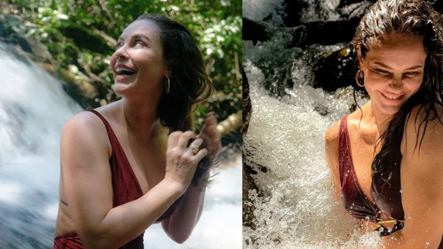 Paolla Oliveira começou o fim de semana em clima de relaxamento. Neste sábado (31), a atriz compartilhou fotos de um banho de cachoeira em suas redes sociais, usando um maiô vinho com recortes laterais e ao som de Louvação à Oxum, de Maria Bethânia. “Pra energizar e encerrar janeiro”, escreveu na legenda.