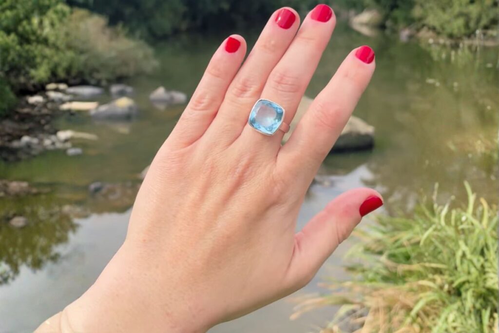Para começar sem erro, peças como o Anel de Prata com Topázio Azul equilibram elegância e praticidade. O metal frio da prata combina com o tom da pedra e mantém o foco no azul cristalino. Em eventos, some um brinco pequeno ou um colar delicado para criar um conjunto harmônico.