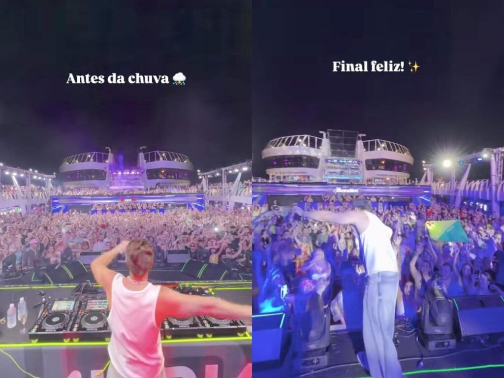 A virada do ano em um cruzeiro acabou tendo um momento inesperado durante a apresentação de Alok. Na noite de sexta-feira (02/01), uma forte ventania atingiu a embarcação e provocou a interrupção temporária do show do DJ, que acontecia em um palco ao ar livre. Apesar do susto, o artista garantiu que a pausa foi rápida e que tudo seguiu com segurança.