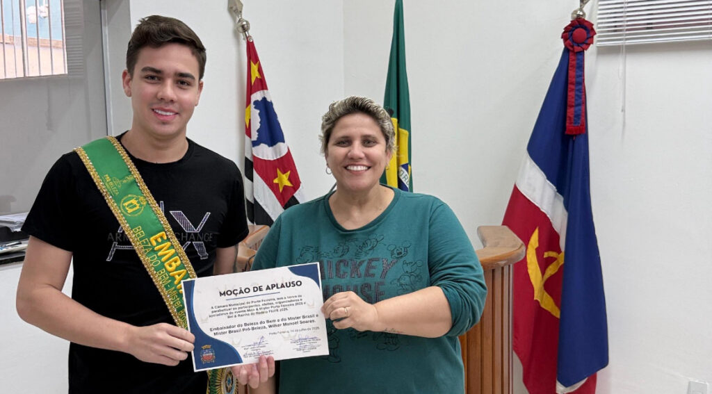 A Câmara Municipal de Porto Ferreira concedeu, no último dia 14 de julho, a Moção de Aplausos nº 34/2025 ao jovem jornalista e Mister Brasil Wilker Manoel Soares, de 24 anos. A homenagem, de autoria da vereadora Priscila Enfermeira, foi aprovada por unanimidade pelos 11 vereadores da Casa de Leis. Wilker tem se destacado no …
