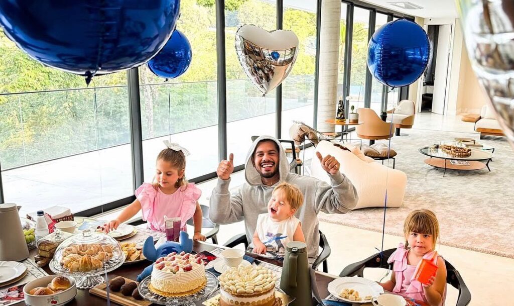 O cantor Zé Felipe celebrou a chegada de seus 28 anos com uma comemoração marcada pela presença da família e por momentos de afeto ao lado dos filhos. A celebração aconteceu durante um café da manhã especial, preparado com decoração de balões, variedade de alimentos e bolo, em um clima descontraído e intimista.