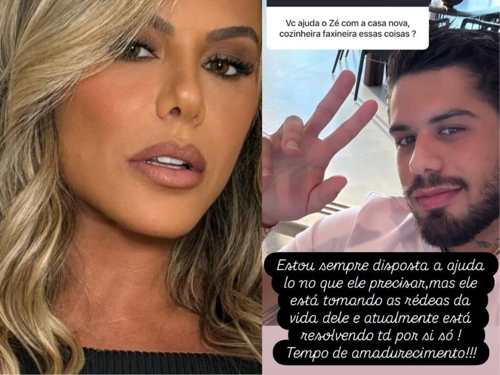 Poliana Rocha, mãe do cantor Zé Felipe, comentou recentemente em seu Instagram sobre a nova fase do filho, que passou a morar sozinho e administrar sua rotina de forma independente. Ao responder perguntas de seguidores sobre possíveis ajudas nas tarefas do dia a dia, Poliana destacou que está à disposição, mas que o cantor prefere resolver as coisas sozinho. “Estou sempre pronta para ajudá-lo quando necessário, mas ele está conduzindo a própria vida e cuidando de tudo por conta própria. É um tempo de amadurecimento”, disse.